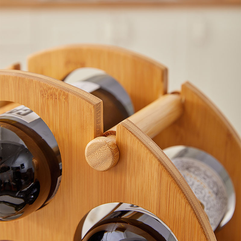 六孔酒架由竹子制成,表面光滑拋光,堅固耐用。當(dāng)用戶觸摸酒架或從架子上拿酒瓶時,可以保護(hù)手。輕巧簡單的設(shè)計,容易組裝,也方便用戶在需要時移動酒架。酒架可容納6瓶葡萄酒。每一個圓孔設(shè)計都可以牢牢地裝下酒瓶。此外,所有的圓孔都留有足夠的空間來伸出瓶口和瓶頭,這很容易從架子上拿瓶子。酒架可以完美地適配家里的廚房,食品儲藏室,櫥柜,餐廳等。